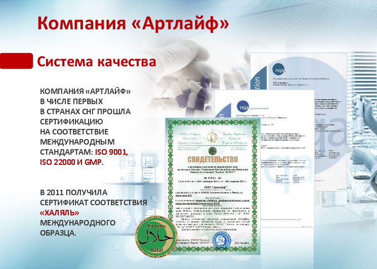 ООО «Артлайф» имеет фармацевтическую лицензию, позволяющую выпускать биологически активные комплексы